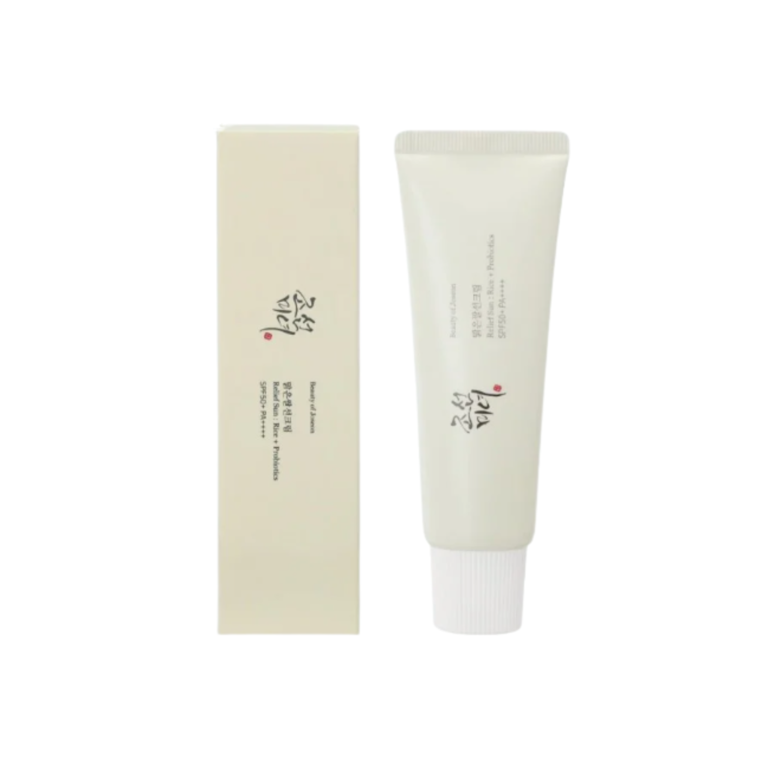 واقي الشمس Beauty of Joseon Relief Sun – Rice + Probiotics هو أحد أشهر واقيات الشمس الكورية المصممة للعناية بالبشرة بشكل لطيف وفعّال. يتميز بتركيبة خفيفة جدًا تشبه المرطب، تمتص بسرعة دون ترك أي ملمس دهني أو طبقة بيضاء، مما يجعله مثاليًا للرجال والنساء وللاستخدام اليومي.